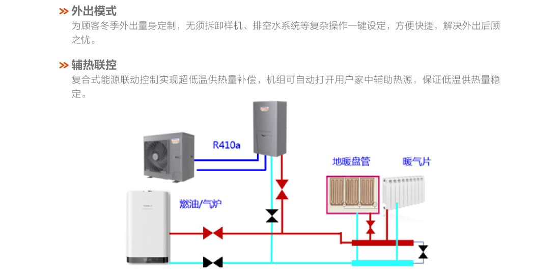 采用直流變頻技術(shù),制熱量范圍8.5~16kW,穩(wěn)定運(yùn)行環(huán)境溫度范圍-20℃~28℃、出水溫度范圍25~55℃,具有低溫強(qiáng)熱、節(jié)能高效、穩(wěn)定可靠等特點(diǎn),適用于集中供暖覆蓋不足的農(nóng)村及城郊地區(qū)以及城市獨(dú)立供暖的公寓、復(fù)式樓、別墅、單元寫(xiě)字樓、餐廳、商店、娛樂(lè)場(chǎng)所等空間.