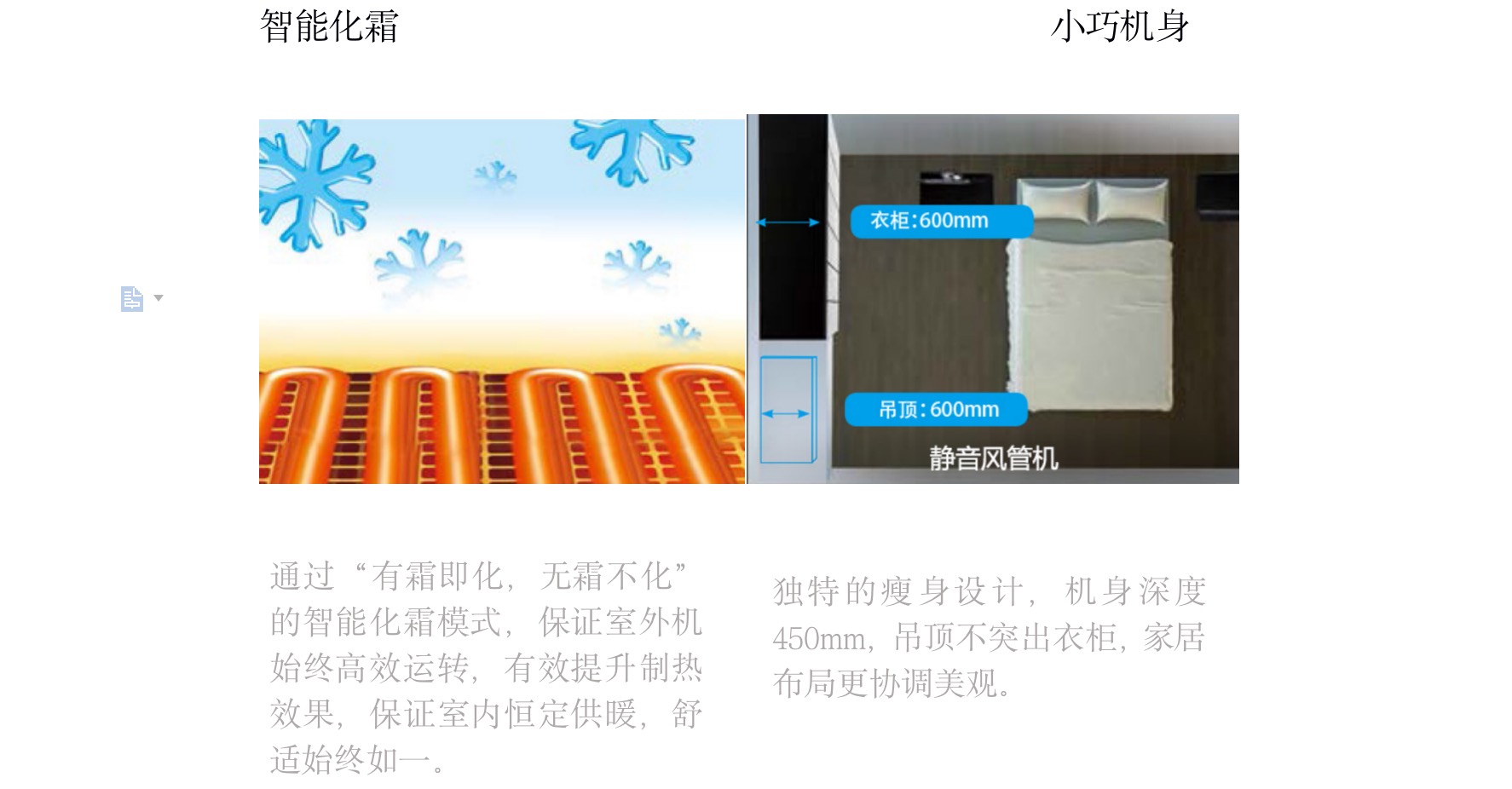采用“V”型換熱器,開(kāi)機(jī)初期,根據(jù)室內(nèi)溫度與設(shè)定溫度自動(dòng)調(diào)節(jié)至高頻狀態(tài),縮短制冷或制熱時(shí)間,提升舒適度